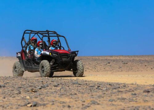Ervaar de schoonheid van de woestijn van Hurghada tijdens een begeleide safari bij zonsondergang, een combinatie van avontuur, cultuur en spectaculaire landschappen.